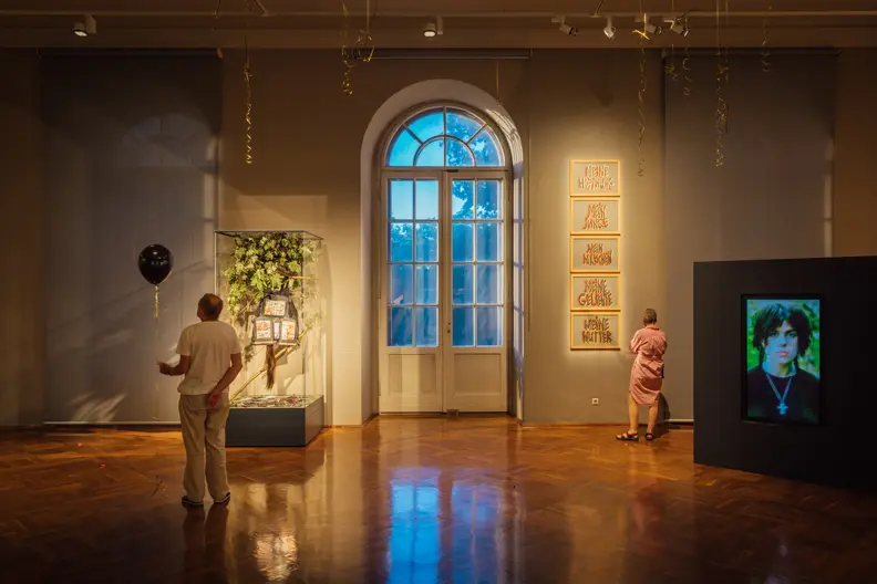 Die Präsentation des belarussischen Künstlerduos 1+1=1, bestehend aus Antanina Slabodchykava und Mikhail Gulin, ist eine Rapid Response auf die aktuelle politische Situation in Belarus. Das „Café Belarus“ entstand bereits 2021 im Kontext der Ausstellung „Sprachlosigkeit – Das laute Verstummen“ und versteht sich auch als Begegnungs- und Diskursort für Exilant*innen und Kulturschaffende aus Belarus und der ganzen Welt.