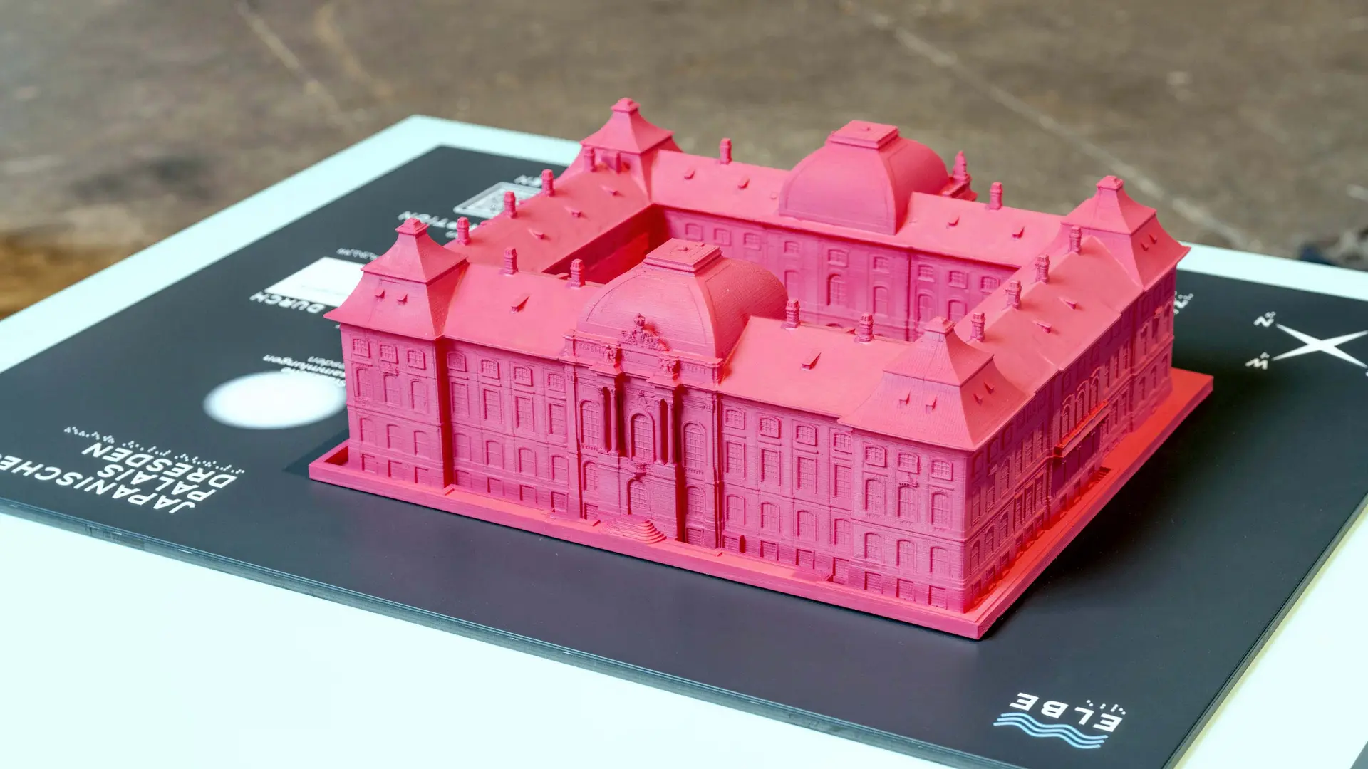 Das Modell, welches 49 cm mal 47 cm misst, wurde mithilfe modernster Technologie erstellt. Eine Vermessungsfirma hat das Japanische Palais mit einer Drohne gescannt, sodass basierend darauf eine digitale Datei entstehen konnte. Anhand dieser wurde das Modell im 3D-Druckverfahren hergestellt. Obwohl einige der feinsten Details aufgrund der Verkleinerung nicht erfahrbar sind, bietet dieses Tastmodell dennoch eine beeindruckende Möglichkeit, sich mit der Struktur des Palais vertraut zu machen.