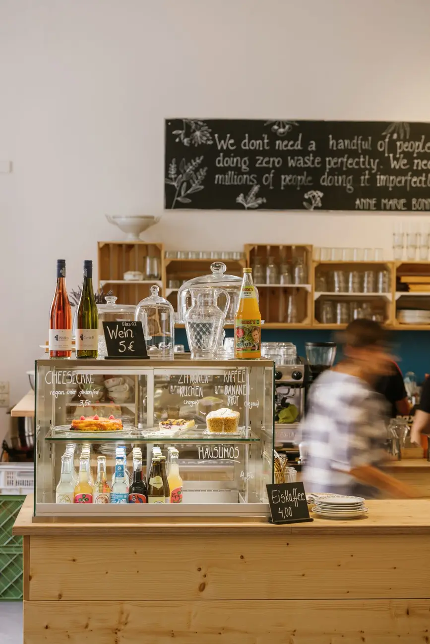 Das Palais Café wird von der VG Verbrauchergemeinschaft eG in Dresden betrieben. Hier erwartet euch eine offene und einladende Atmosphäre, gepaart mit frischem, nachhaltigem Geschmack: Unsere Speisekarte orientiert sich an einem ressourcenschonenden, kreativen Umgang mit Lebensmitteln –möglichst regional, möglichst saisonal und immer Bio. Ein klassisches Café-Angebot ergänzen wir durch einen kleinen Mittagstisch sowie ein zusätzliches Frühstücksangebot am Wochenende und an Feiertagen. Auch im Raum selbst stehen bei uns gemeinschaftliches Nutzen und Nachhaltigkeit im Mittelpunkt: Möbel und Materialien werden möglichst weiterverwendet oder repariert. Das Palais Café versteht sich als lebendiger Treffpunkt zum Wohlfühlen: egal ob im Gespräch, beim Solo-Kaffee oder in der Mittagspause. Wir laden Besucher*innen ein, den Ort weiter mitzugestalten und ihn zu einem offenen Raum für alle werden zu lassen.